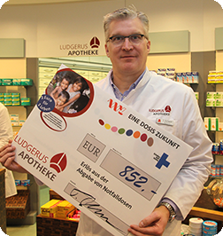 Apotheker Thorsten Gottwald übergibt 852 Euro an „Eine Dosis Zukunft“