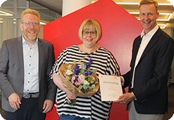 Meilenstein für die Abteilung Aus- und Fortbildung der AKWL: Frank Dieckerhoff, Vizepräsident der Apothekerkammer Westfalen-Lippe überreichte zusammen mit Dr. Oliver Schwalbe, Abteilungsleiter Aus- und Fortbildung, das insgesamt 3.000. Erstzertifikat für PTA der AKWL an Manuela Dreisvogt.