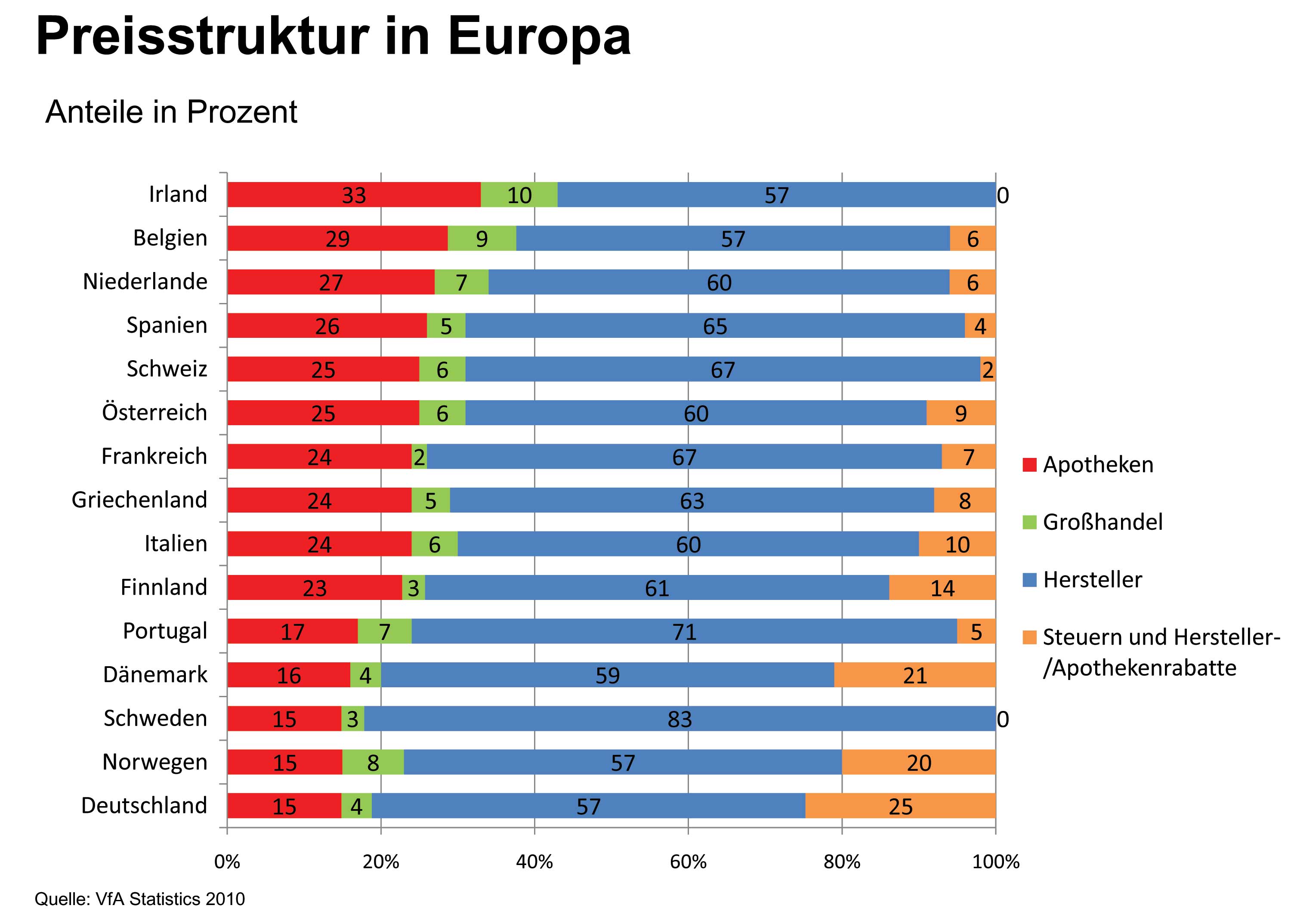 • Der Anteil der Apotheken an den Arzneimittelkosten liegt in keinem europäischem Land niedriger als in Deutschland (siehe Grafik).