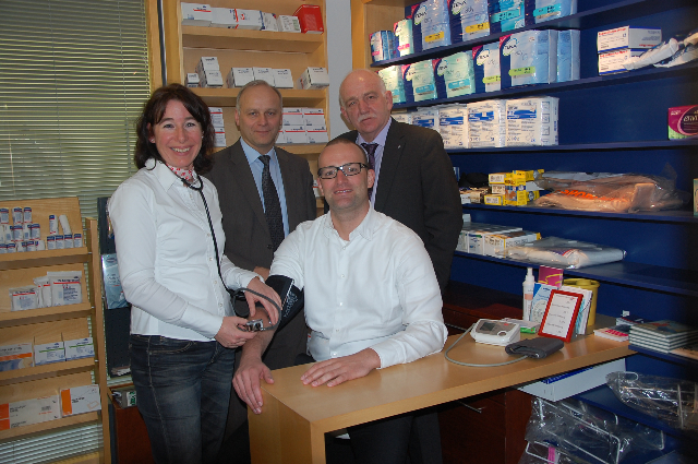 Stimmt der Blutdruck? Gabriele Regina Overwiening mit Johannes Röring, Jens Spahn und Bernhard Schemmer (v. li.).