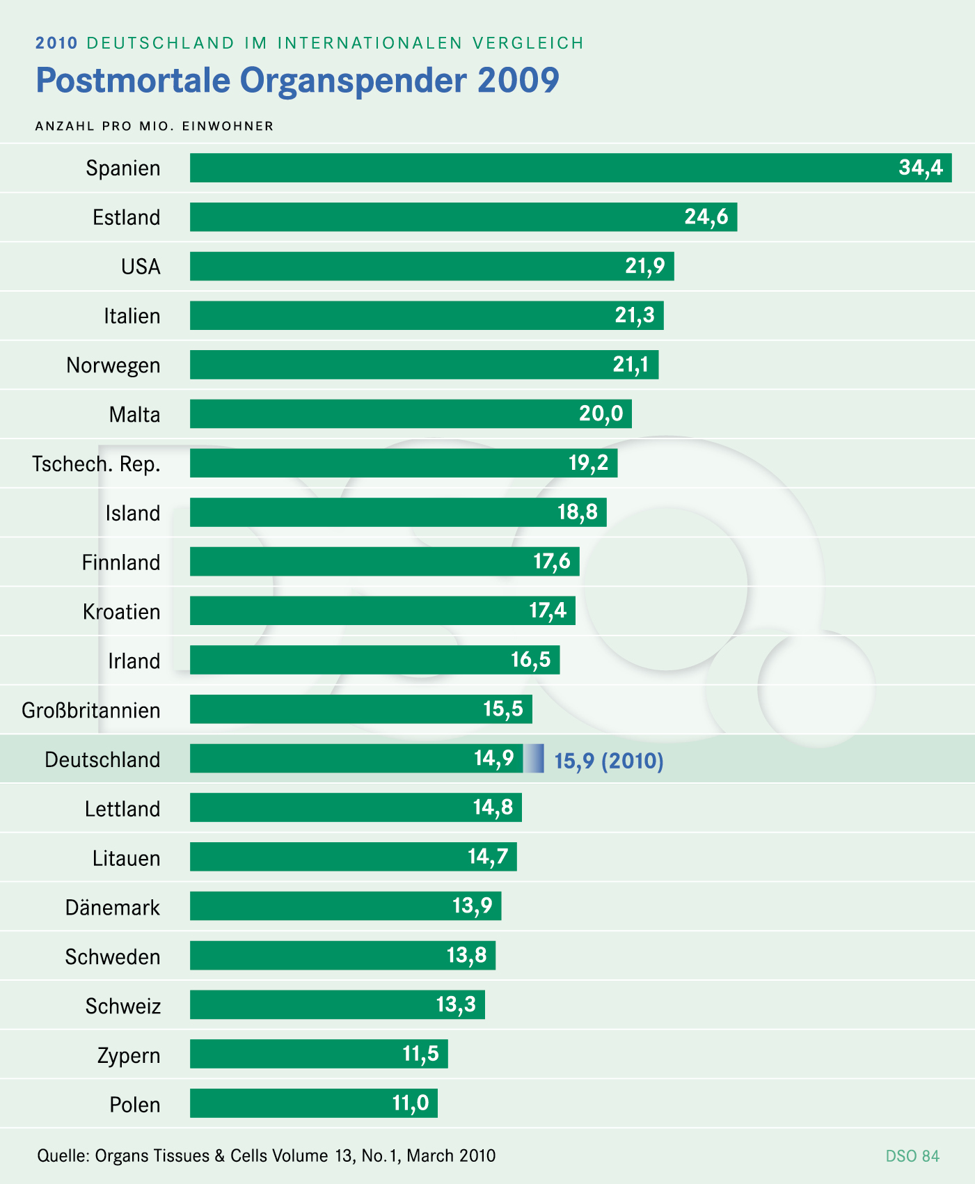 Im Jahr 2010 spendeten 1.296 Menschen ihre Organe nach dem Tode. Gleichzeitig warteten rund 12.000 Patienten auf ein geeignetes Spendeorgan. 2010 wurden inkl. der Transplantationen nach Lebendspende 5.083 Organe übertragen. „Die Zahl der Organspender wächst, dennoch liegt Deutschland immer noch im hinteren europäischen Mittelfeld“, betont Gabriele Regina Overwiening, Präsidentin der Apothekerkammer Westfalen-Lippe.