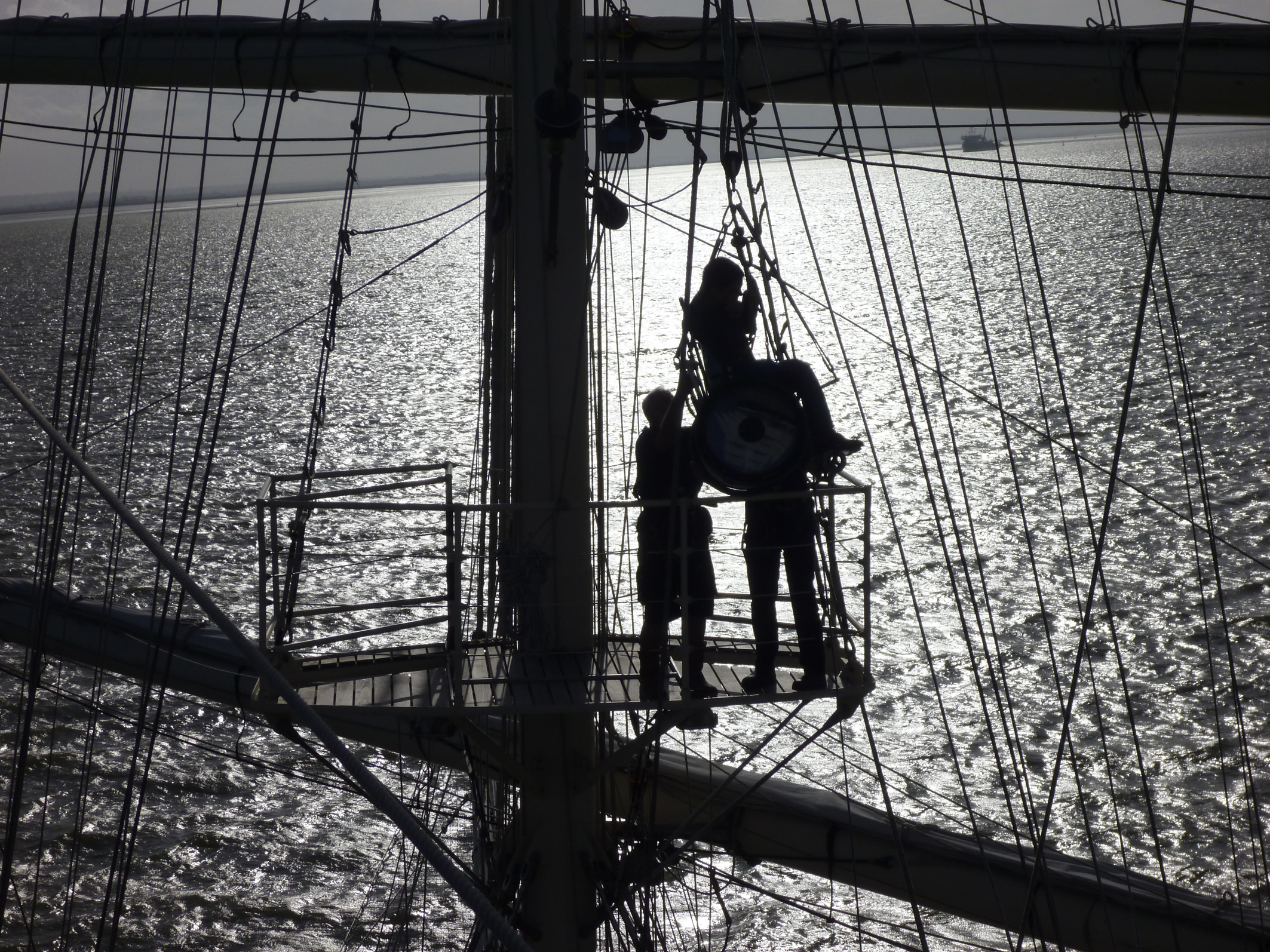Das 60 Meter lange Segelschiff bot für eine Woche einen quasi abgeschlossenen Raum: Egal ob Rolli-Fahrer oder Fußgänger, ob topfit oder eher anfällig – alle halfen beim Küchendienst, hängten sich beim Brassen und Setzen der Segel mit aller Kraft in die Seile. Jeder beteiligte sich an den „Rund-um-die-Uhr-Wachdiensten" und kam zwangsläufig mit einem Minimum an Schlaf aus.