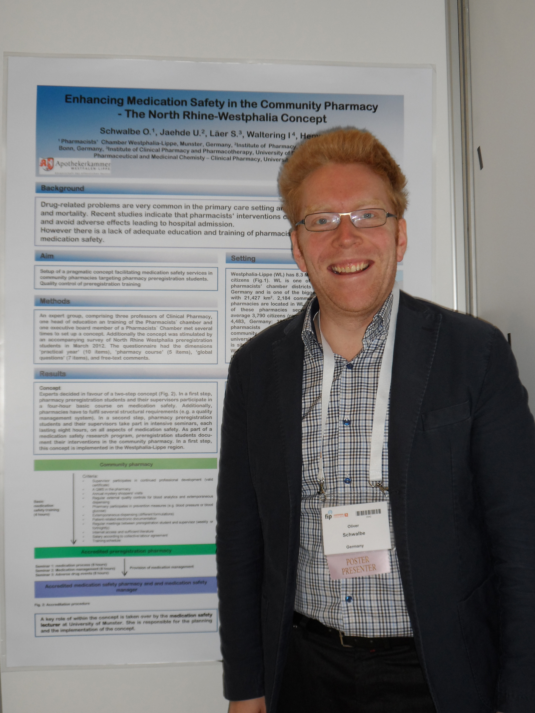 (Münster, 15. Oktober 2012) Das Konzept der Ausbildungsapotheke der Apothekerkammer Westfalen-Lippe AKWL) wurde jetzt auf der Jahrestagung der Féderation Internationale Pharmaceutique (FIP) in Amsterdam präsentiert.