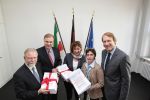 Gesundheitsministerin Barbara Steffens (2. v. re.) nahm über 14.000 Unterschriften für eine gerechte Vergütung der Apotheke in Empfang - von Lutz Engelen, Dr. Klaus Michels, Gabriele Regina Overwiening und Thomas Preis (v. li.).