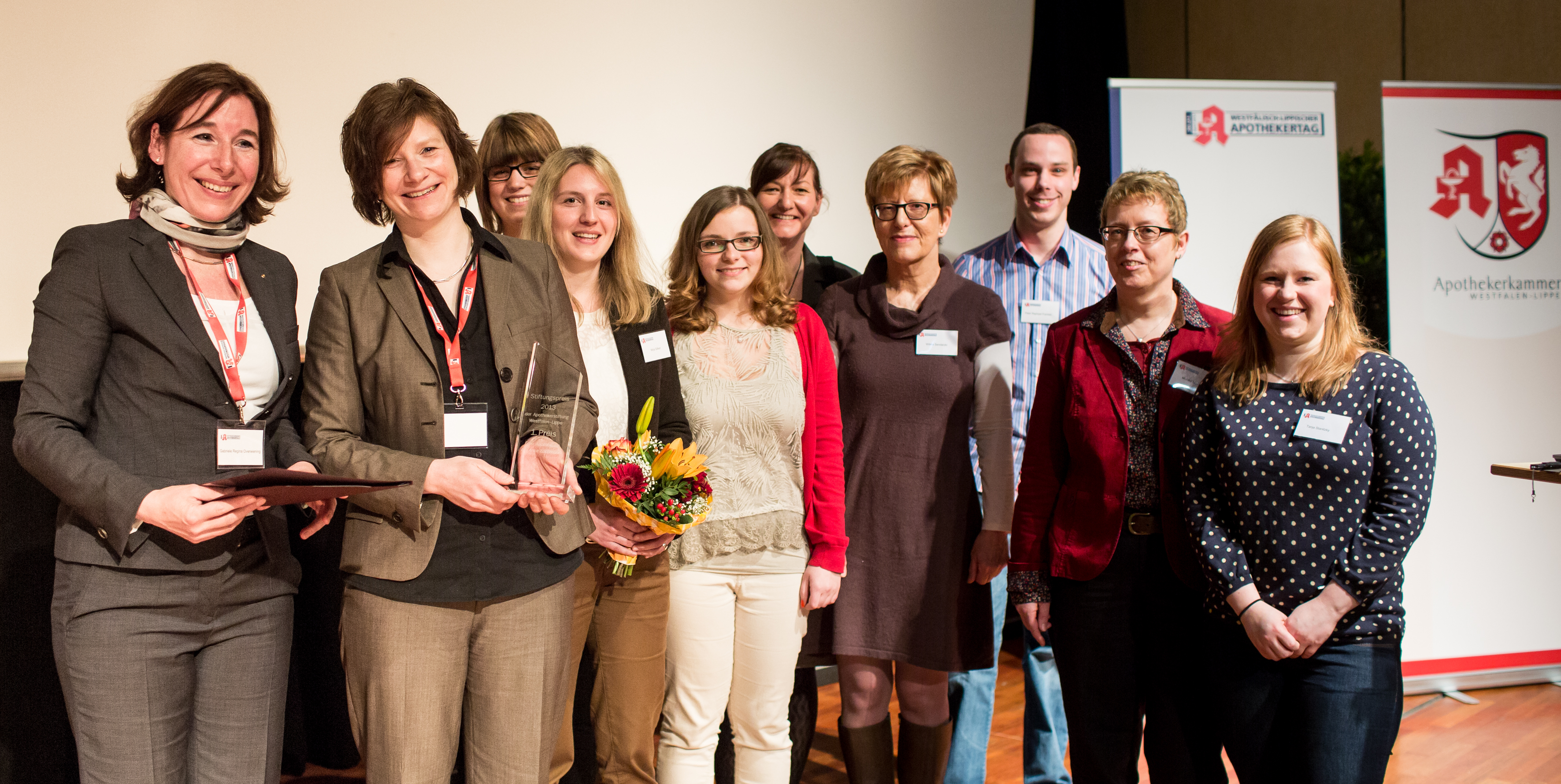 Mit jeweils 1.500 Euro Preisgeld wurden letztlich zwei Preisträger für ihre erfolgreich umgesetzten Ideen belohnt – beide als „erste Preisträger“: Zum einen Chefapothekerin Anette Woermann von der Zentralapotheke der Marienhospital Gelsenkirchen GmbH mit ihrem Team für das Projekt „Einführung der Arzneimittelanamnese durch die Krankenhausapotheke zur Verbesserung der Arzneimitteltherapiesicherheit und Verbesserung der Schnittstelle „ambulant – stationär“, zum anderen Apothekenleiterin Dr. Anke Lochmann und ihr Team für das Projekt „Pharmazie in Theorie und Praxis – PhiT up! Eine Kooperation der Gesamtschule und der Markt-Apotheke Fröndenberg zur Förderung der Berufsorientierung und Verbesserung der Außendarstellung“.