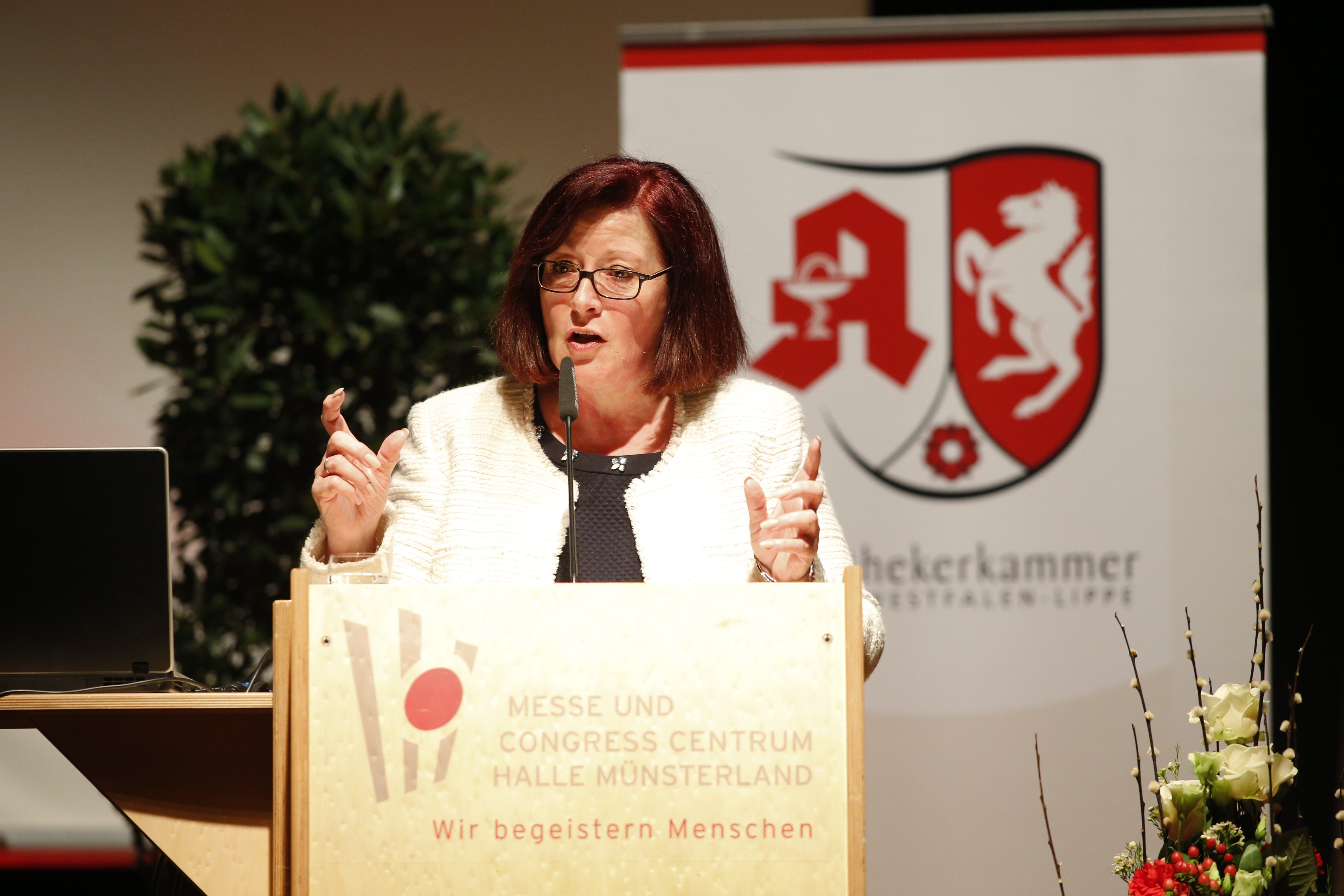 Mehr als 1.400 Apotheker/innen, Pharmaziestudenten und PTA besuchten am vergangenen Wochenende die mittlerweile fünfte Auflage des Westfälisch-lippischen Apothekertages. Die Rekordbeteiligung verdeutliche, so Kammerpräsidentin Gabriele Regina Overwiening, „wie sehr die Apothekerschaft in Westfalen-Lippe an der fachlichen Fortbildung interessiert ist und sich unter dem Kongressthema „Näher am Patienten“ speziell der Beratung, Betreuung und Begleitung von Patienten widmet.“ Diese Nähe zum Patienten stand bei den zum Teil parallel angebotenen Fachvorträgen und Workshops für Apotheker/innen und PTA im Mittelpunkt des zweitägigen Kongresses, der alle zwei Jahre von der Apothekerkammer Westfalen-Lippe organisiert wird. Auf großen Zuspruch stieß auch die Fachausstellung mit über 60 Dienstleistern und Partnern der Apothekerschaft.