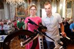 Kammerpräsidentin Gabriele Regina Overwiening mit Extremsportler Andreas Niedrig und High-Tech-Rennrad. Foto: AKWL/Sokolowski