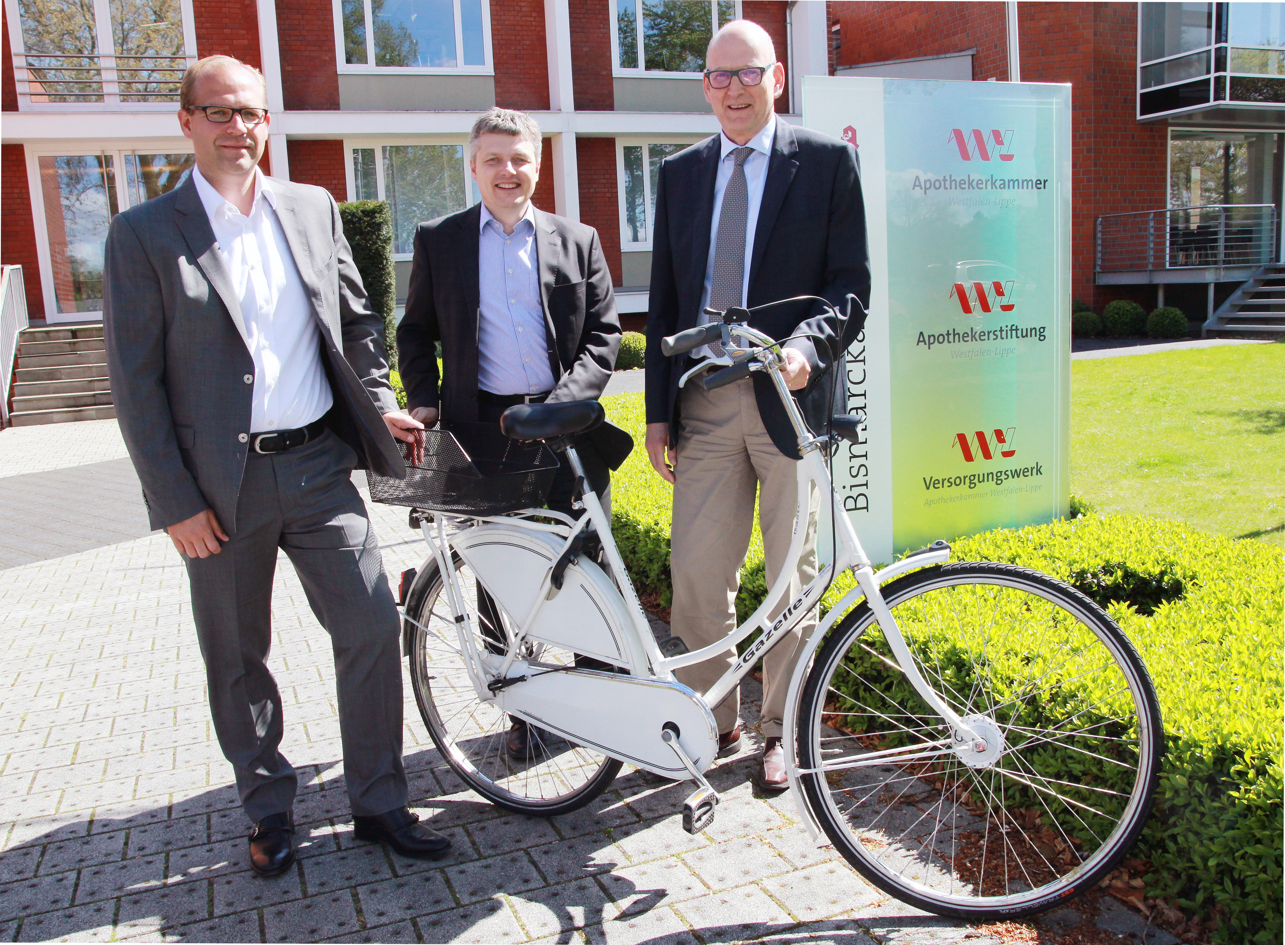 Die Gesundheit wird gefördert, die Angestellten sparen Geld, und der Arbeitgeber hat keine Extrakosten: Mitarbeiterinnen und Mitarbeiter der Apothekerkammer Westfalen-Lippe und des Versorgungswerkes kommen nun in den Genuss des „Jobrads“. „Das ist eine Win-Win-Situation für alle Seiten“, betonen AKWL-Hauptgeschäftsführer Dr. Andreas Walter sowie mit Andreas Hilder und Christoph Korte die Geschäftsführer des VAWL.