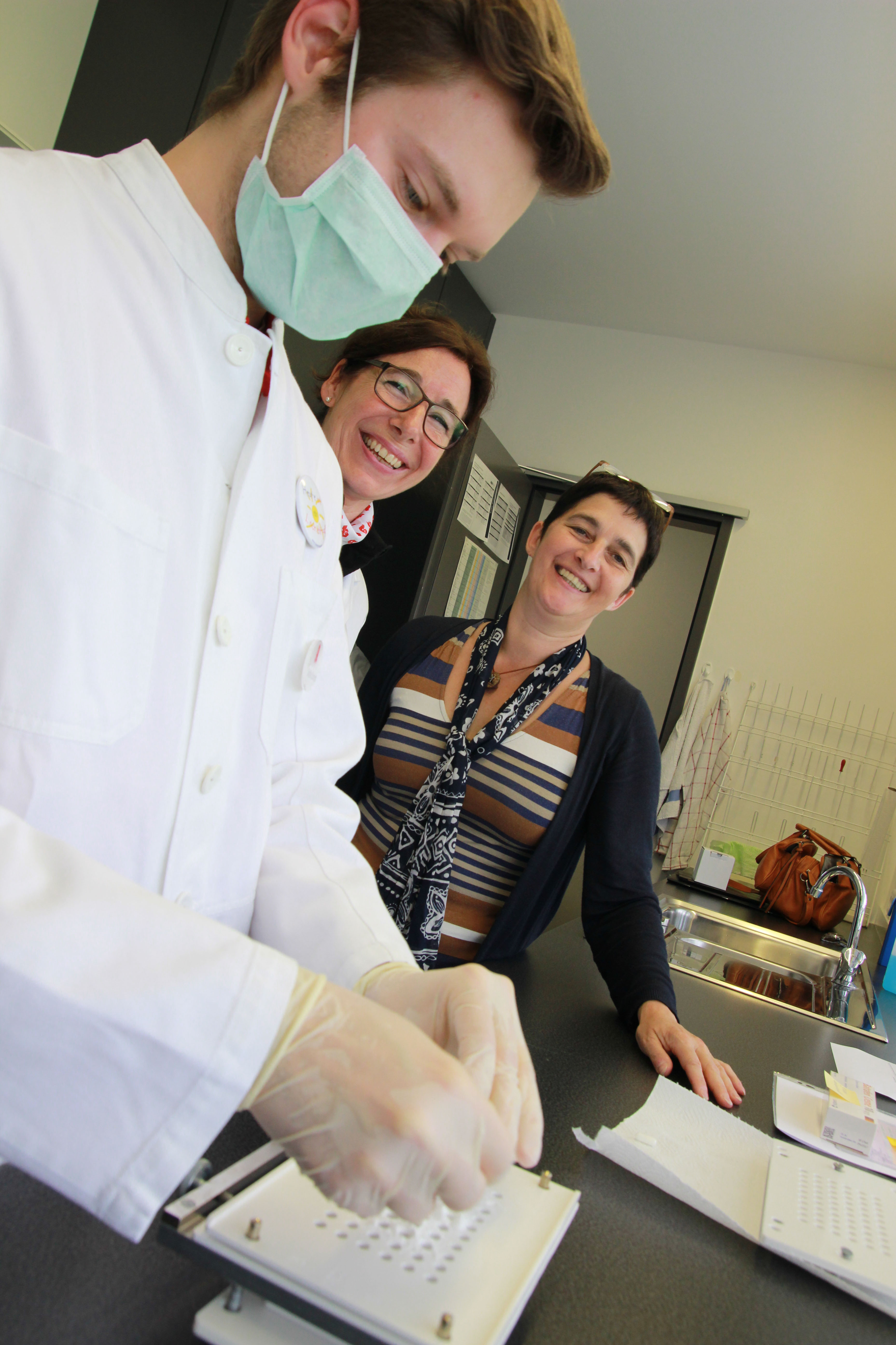 Dass auch im „Backoffice“ einer Apotheke jede Menge Heilberuf steckt, zeigte Overwiening im Rahmen einer kleinen Führung durch ihre Apotheke, wobei mit Steffen Schmidt ein Pharmazeut im Praktikum (PhiP) zeigte, dass Pharmazie vor Ort häufig da beginnt, wo die Industrie aufhört. So stellte er für die Ministerin Kapseln her (zur Anschauung mit Vitamin-C) – stellvertretend für die vielen Individualrezepturen, die in deutschen Apotheken jeden Tag hergestellt werden, und die „bislang nicht ausreichend honoriert werden“, so die Kammerpräsidentin.