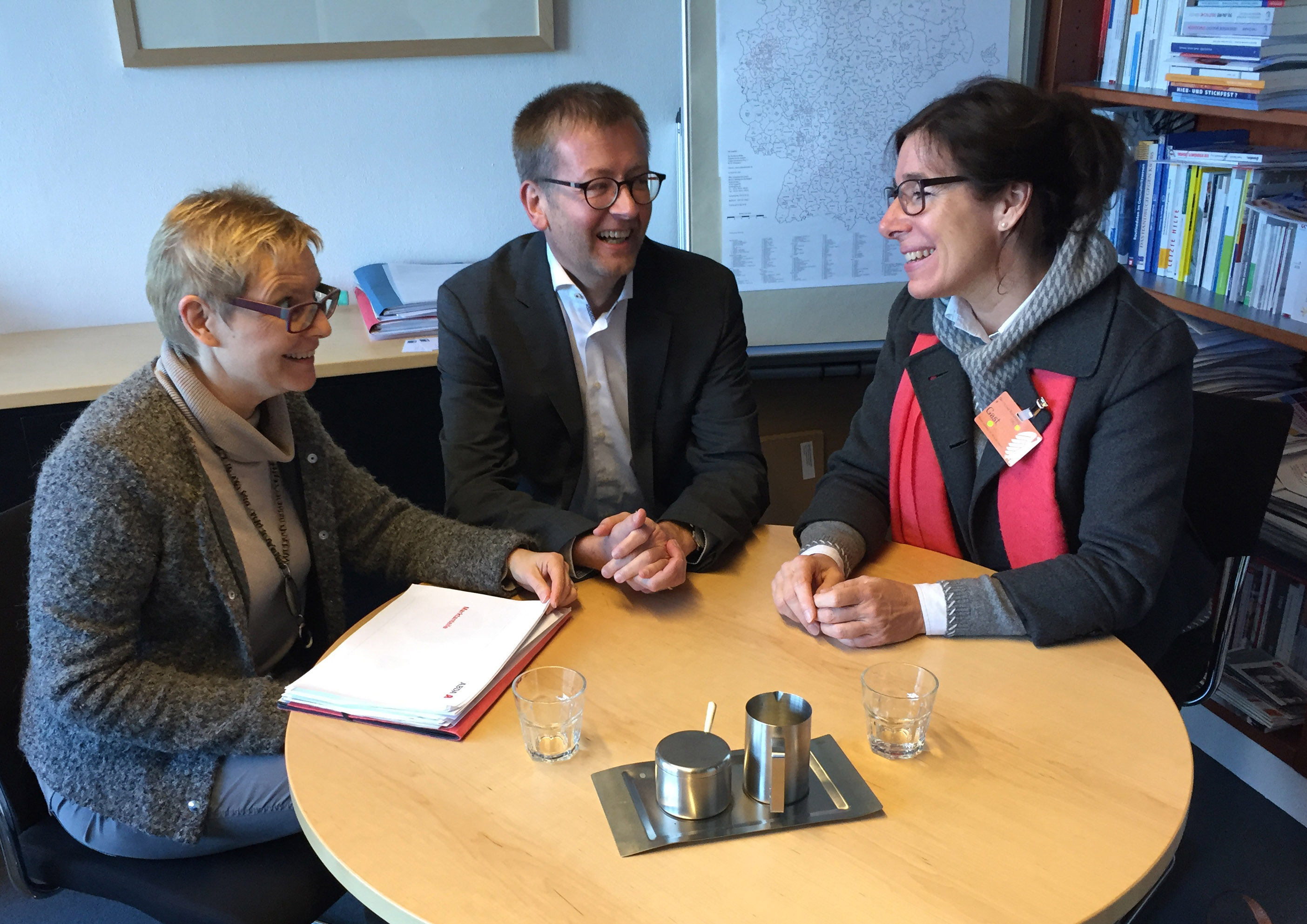 Ein ausführliches Gespräch über die Zukunft der Arzneimittelversorgung führte am heutigen Donnerstag die Präsidentin der Apothekerkammer Westfalen-Lippe, Gabriele Regina Overwiening, in Berlin mit den SPD-Bundestagsabgeordneten Sabine Dittmar (Bad Kissingen) und Burkhard Blienert (Paderborn). Beide Abgeordnete stellten fest: „Wir wollen die Bedeutung der Apotheke vor Ort sichern.“ Das Urteil des Europäischen Gerichtshofes vom 19. Oktober, nach dem ausländische Versandapotheken Rezept-Boni auf verschreibungspflichtige Arzneimittel gewähren dürfen, stelle eine Wendepunkt in der Diskussion um die Sinnhaftigkeit des Arzneimittelversandhandels dar, stellte Overwiening in dem Gespräch heraus. „Die Gefahren, die sich daraus für die flächendeckende Versorgung ergeben, dürfen nicht heruntergespielt werden“, betonte die Präsidentin. „Sonst kann es sehr schnell zu einem Dammbruch kommen.“ Sie fügte hinzu: „Pharmazeutische Dienstleistungen, so wie sie in einer alternden Gesellschaft zur Verbesserung der Patientenversorgung von uns Heilberuflern erwartet werden, können aber nur dann etabliert werden, wenn die Politik einen verlässlichen Rahmen dafür bietet.“