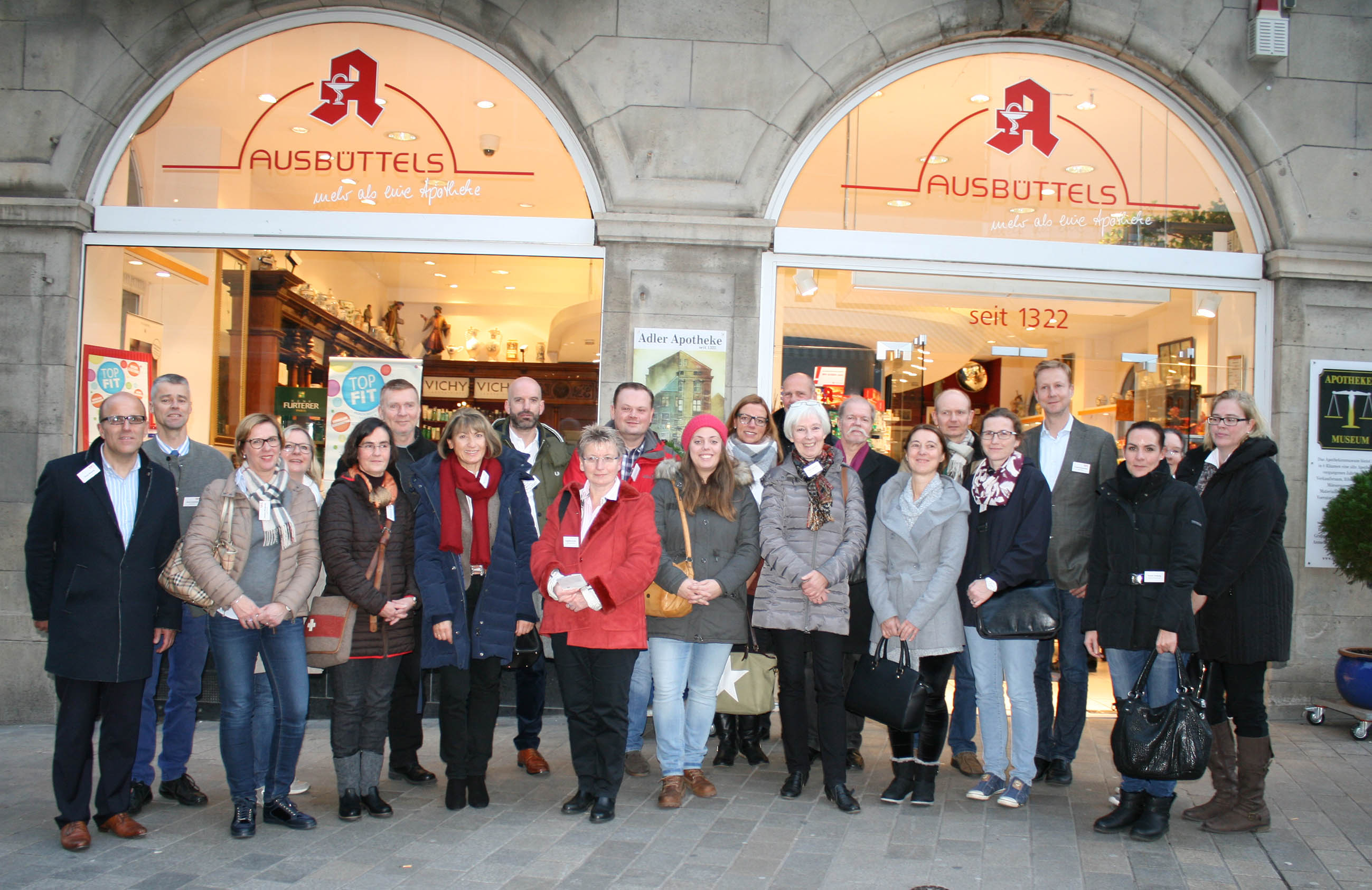 Vor der ältesten Apotheke in Dortmund: 14 Berufsberater/-innen nahmen an der Infoveranstaltung der Apothekerkammer in Dortmund teil.