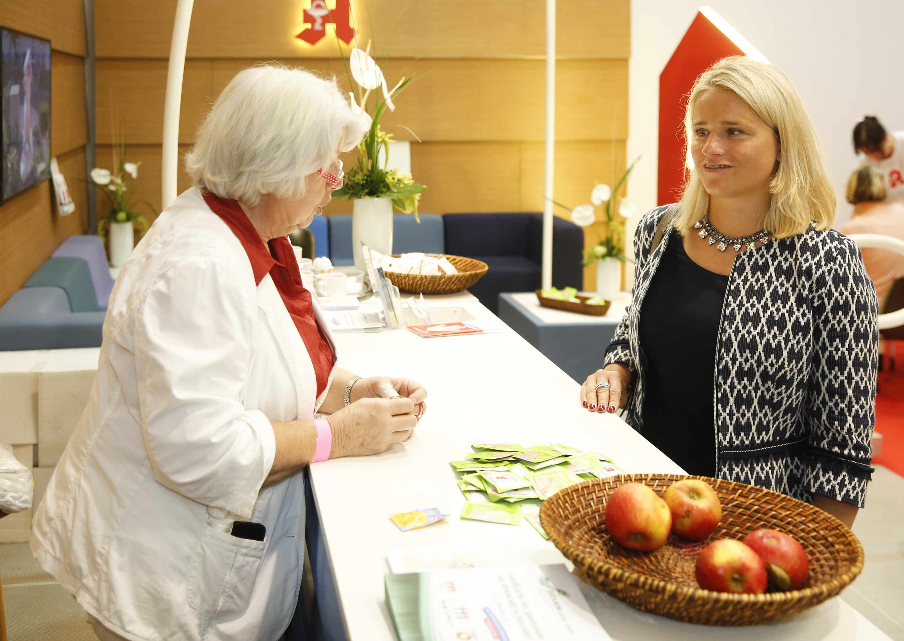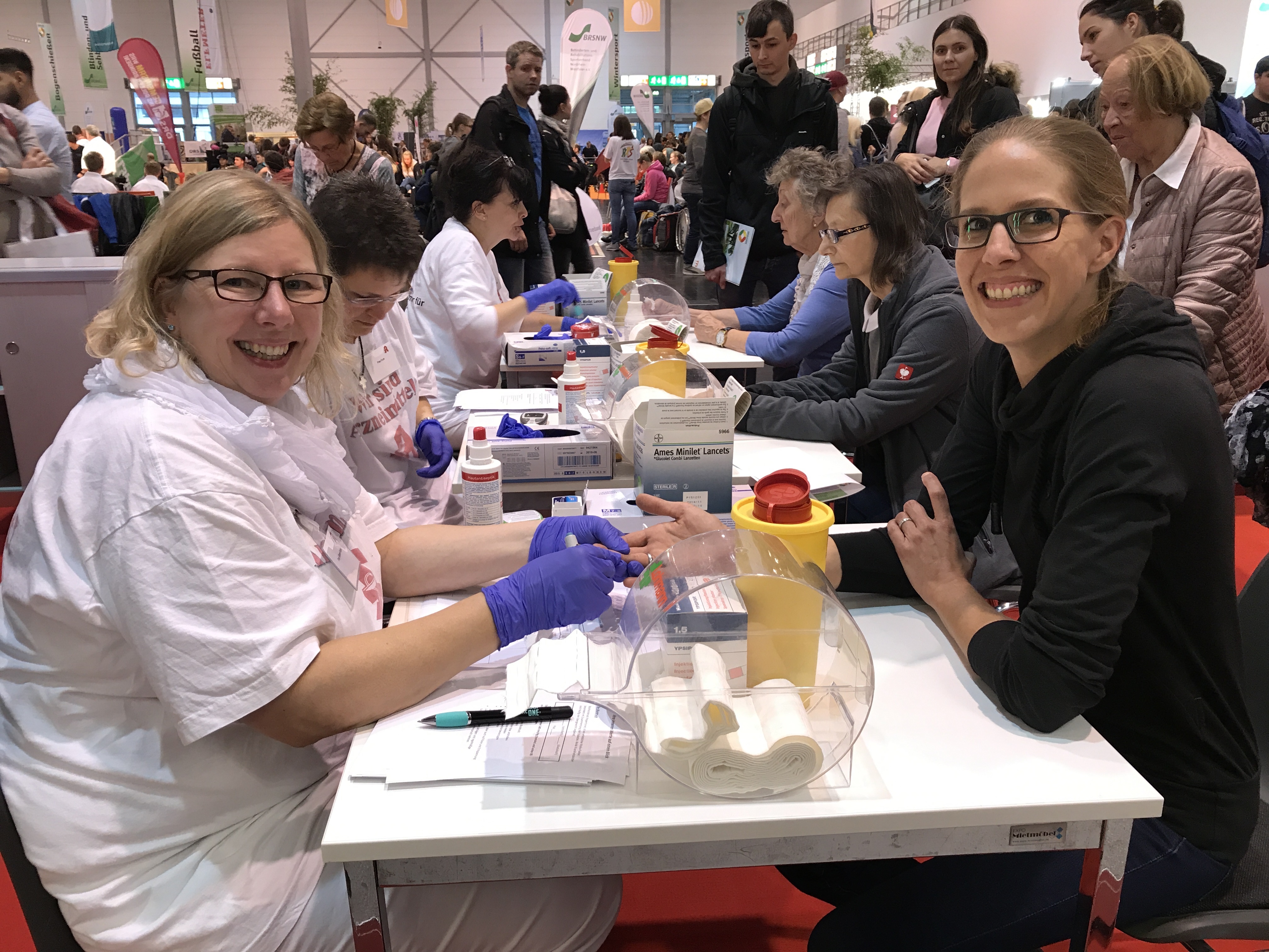 Dabei sorgten vier große Deckenbanner für besonderes Aufsehen. Das barrierefreie Messeangebot der Apothekerschaft im Sportcenter des Behinderten- und Rehabilitationssportverbandes NRW (BRSNW) stieß auf eine sehr große Besucherresonanz. Das pharmazeutische Team war im Großeinsatz: Insgesamt konnten in vier Tagen über 6.000 Blutdruck- und Blutzuckermessungen durchgeführt werden. Darüber hinaus erhielten die Besucher zahlreiche Infos zur Bedeutung der Apotheke und zu den einzelnen Berufsfeldern Apotheker, PTA und PKA in der Apotheke.