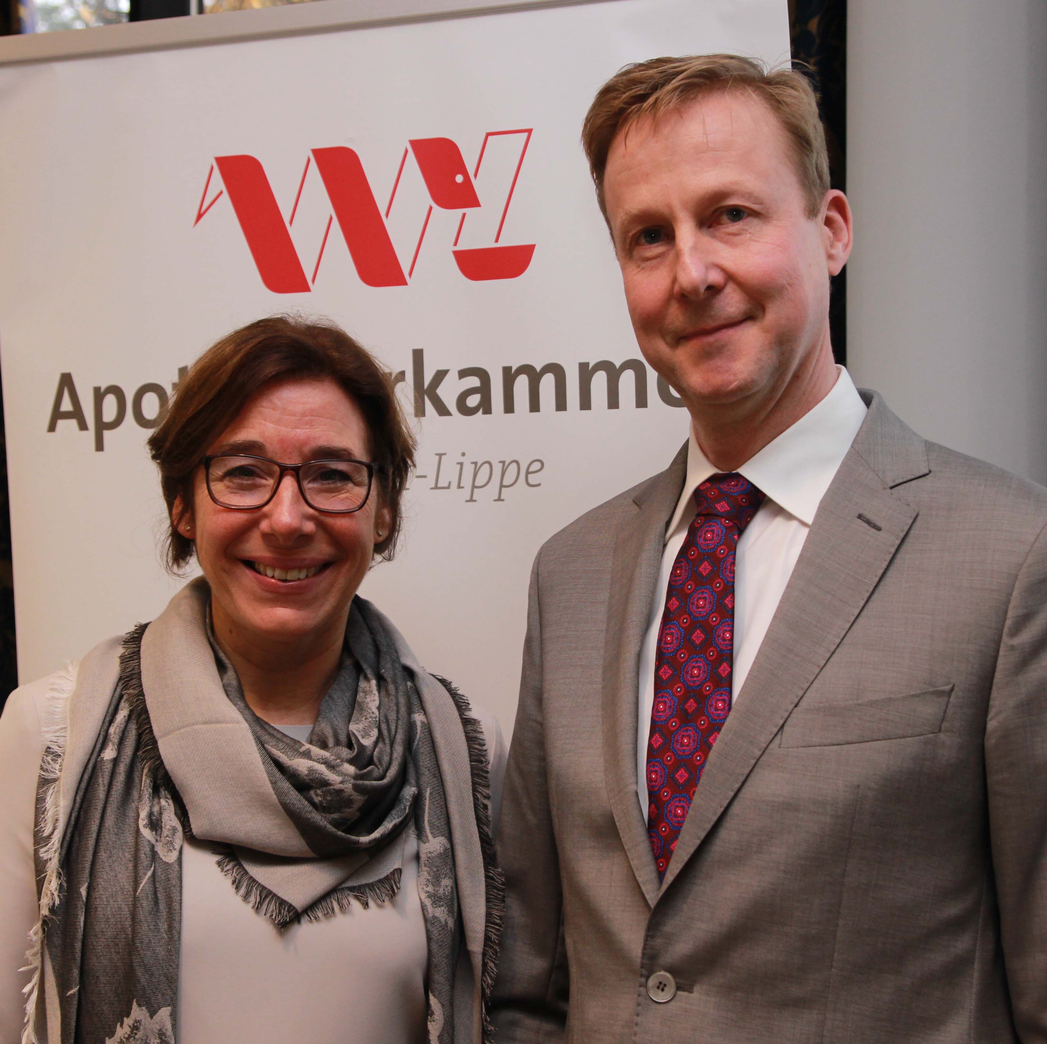 Der neue Vizepräsident freut sich auf das Amt und stellt zugleich fest: „René Graf hat während seiner Amtszeit vieles bewegt und durch seinen Einsatz entscheidend dazu beigetragen, dass sich die AKWL als moderner Dienstleister für ihre Mitglieder etabliert hat. Diesen Ansatz möchte ich gerne fortführen.“ Sein Vorgänger René Graf, der die Hirsch-Apotheke in Beckum führt, musste sich das Kürzertreten zwar verordnen lassen, freut sich aber auch auf die Zeit nach dem Amt: „Für mich geht jetzt ein Wunsch in Erfüllung, der über acht Jahre stetig wuchs“, sagt Graf, „mich nämlich selbst wieder an der Teamarbeit in der Apotheke beteiligen zu können.“ Er fügt zugleich hinzu: „Mit Frank Dieckerhoff hat die Kammerversammlung meinem Wunschkandidaten durch ein deutliches Votum viel Rückenwind für seine neue Aufgabe mit auf den Weg gegeben.“