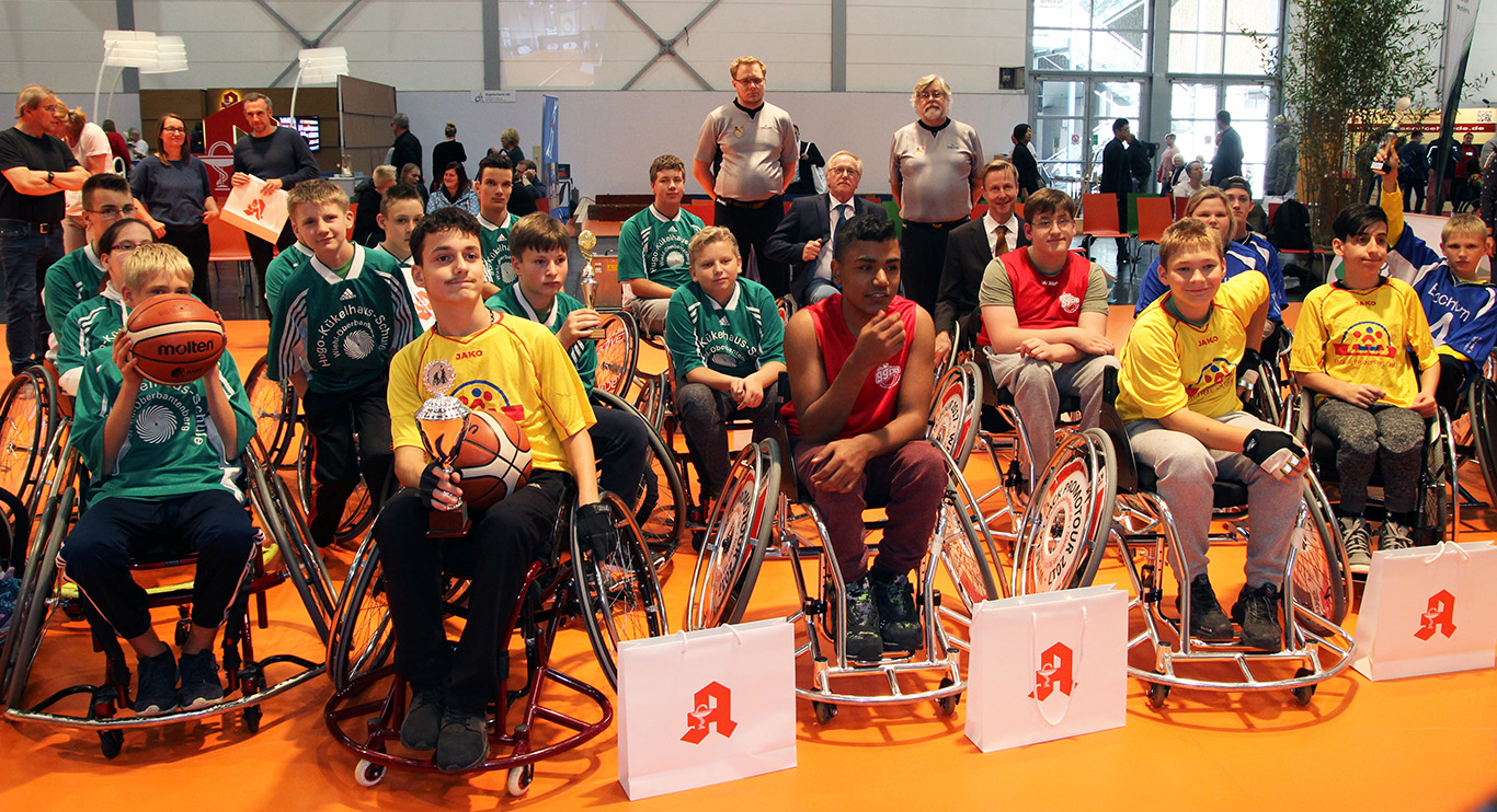 Eines der Messehighlights fand bereits am ersten Messetag statt: Das Schulturnier im Rollstuhlbasketball um den Apothekenpokal. Drei Mannschaften spielten um den ersten Platz. Am Ende setzte sich die LVR-Schule am Königsforst aus Rösrath durch. Andrea Milz, Staatssekretärin für Sport und Ehrenamt des Landes Nordrhein-Westfalen, lobte am Rande der Siegerehrung das erneute Engagement der Apothekerschaft in NRW für den Behindertensport. Marlene Langenberg-Nüsser überreichte den Apothekenpokal gemeinsam mit Frank Dieckerhoff. Beide betonten, dass man sich freue, beim diesjährigen Turnier den Nachwuchs zu fördern. Die Siegermannschaften erhielten darüber hinaus Medaillen und Basketbälle.