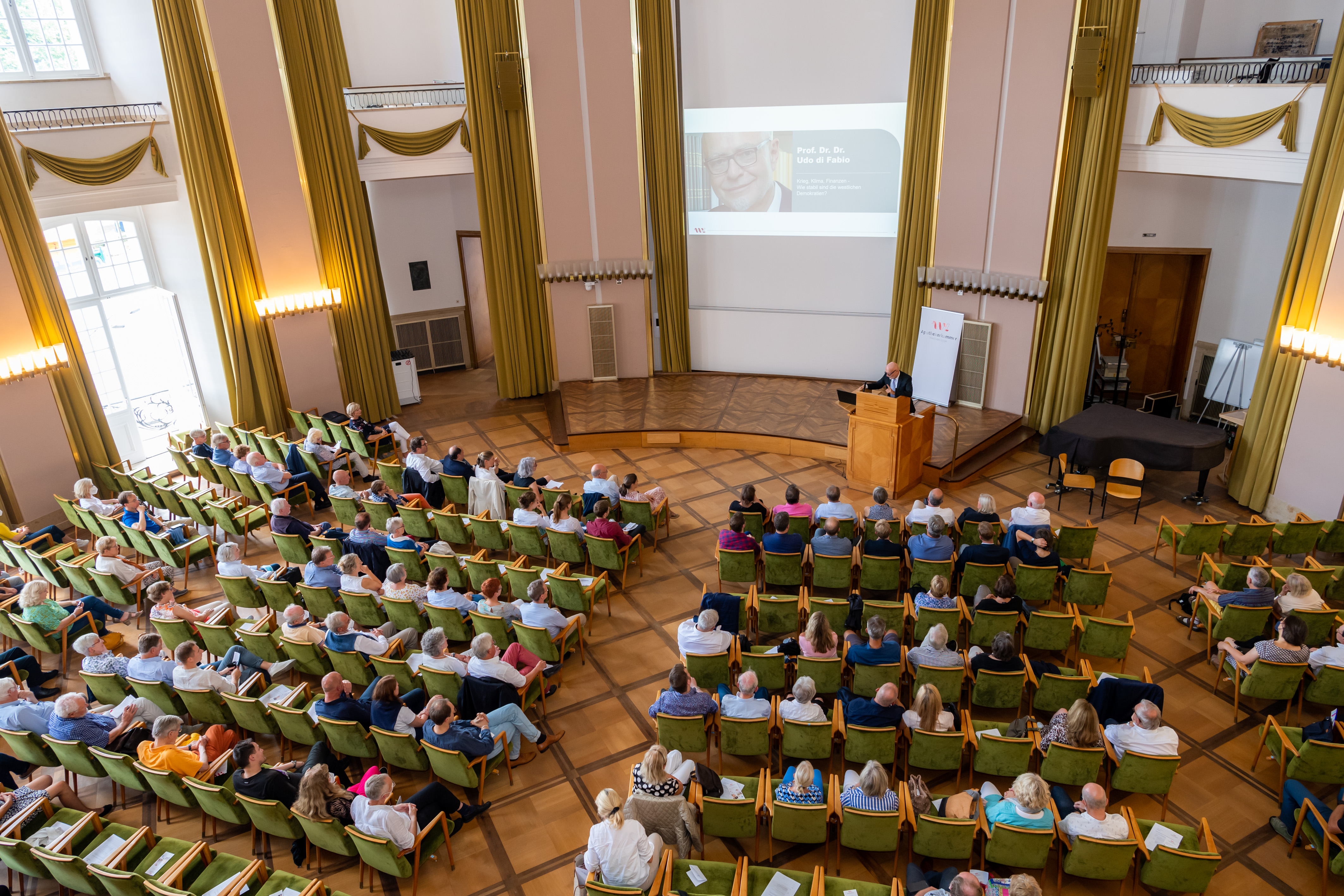 Vor den Besucherinnen und Besuchern aus Apothekerschaft und Stadtgesellschaft setzte sich Di Fabio mit den großen globalen Krisen auseinander: mit dem Krieg in der Ukraine, dem Wirken Wladimir Putins in Russland und den daraus folgenden Auswirkungen auf die Demokratien der Welt. Damit einhergehend sprach er auch über Unsicherheit in der Versorgung mit Erdgas.
