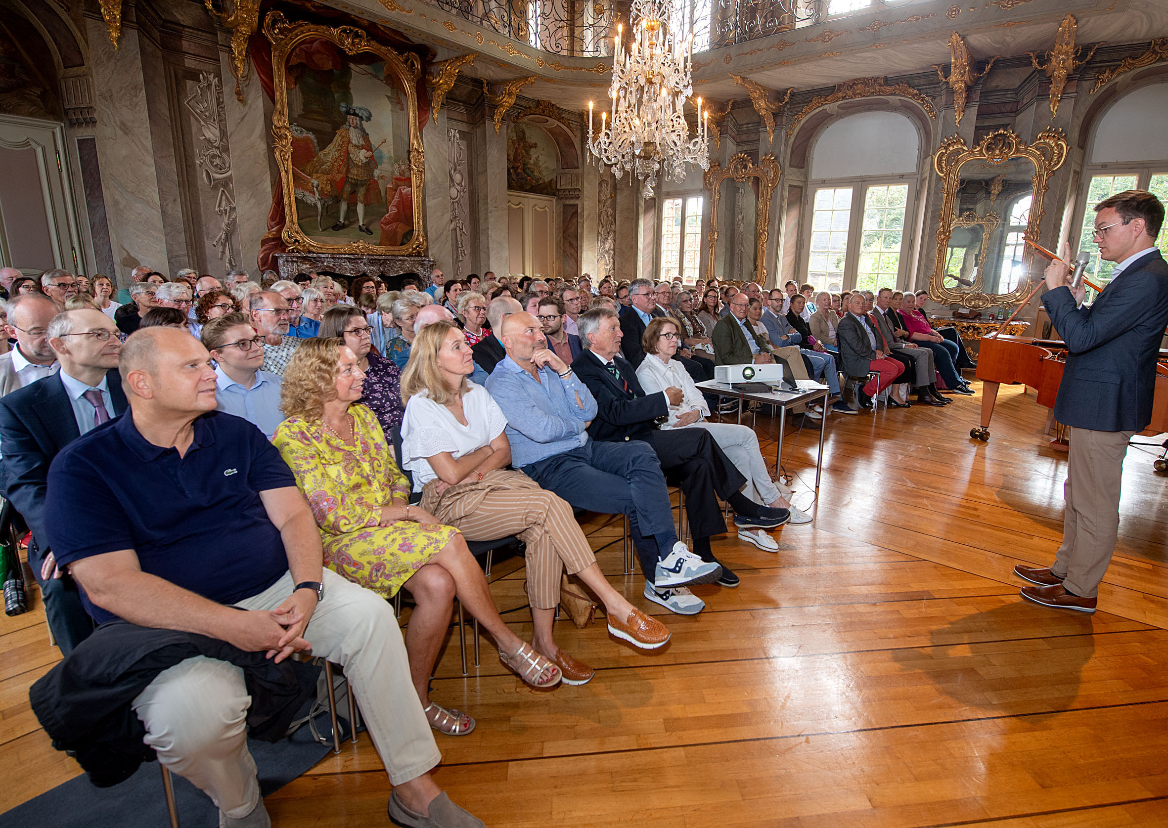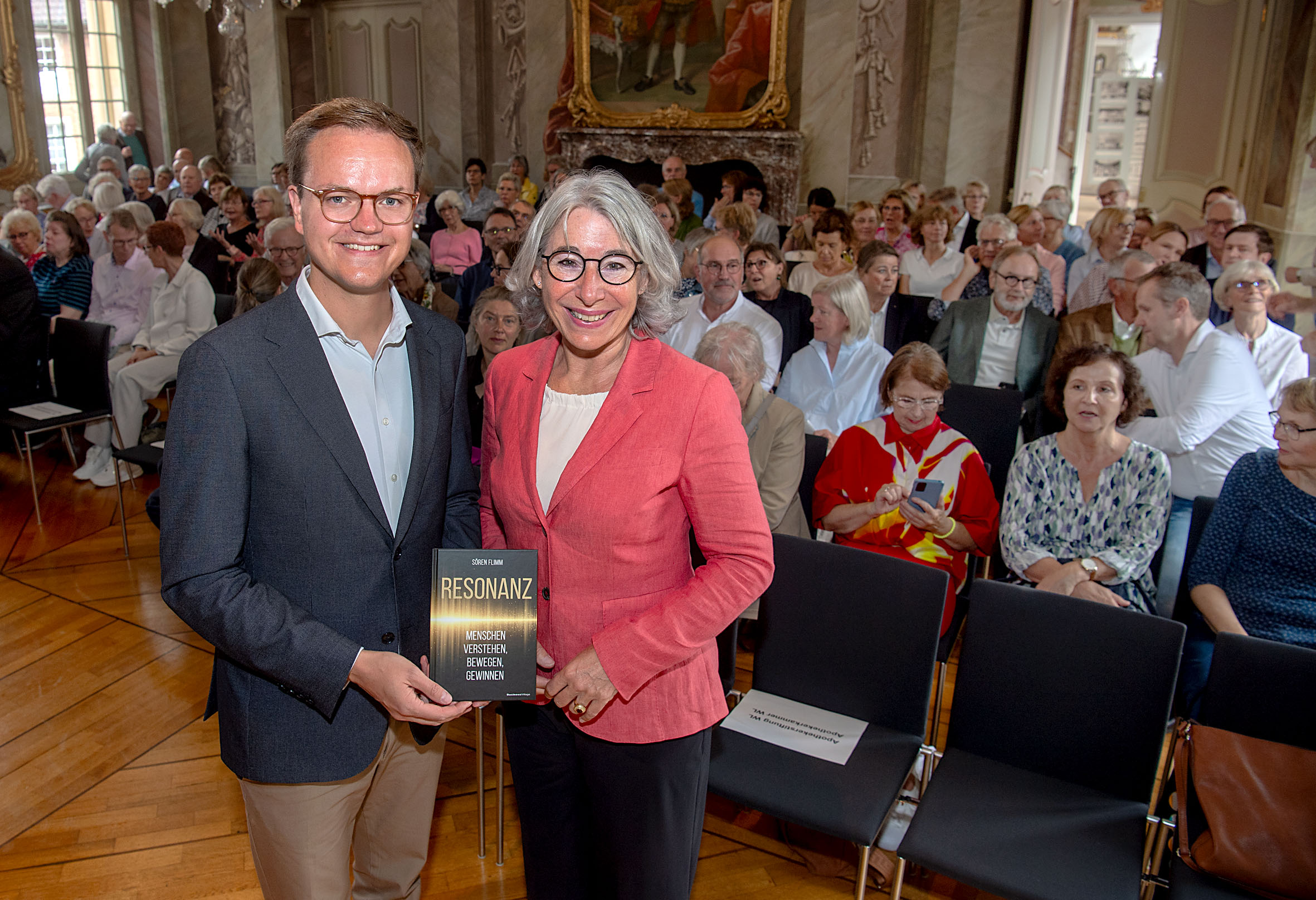 Einen außergewöhnlichen Nachmittag erlebten die 160 Besucherinnen und Besucher des Stiftungsvortrages der Apothekerstiftung Westfalen-Lippe am vergangenen Samstag im historischen Erbdrostenhof Münster: Sören Flimm hatte nicht nur einen Vortrag zum Thema „Resonanz: Menschen verstehen und gewinnen“ im Gepäck, sondern gleichzeitig noch einige Musikstücke auf dem Flügel des altehrwürdigen Baudenkmals mitgebracht. Daran zeigte der gelernte Bank-Manager, Entertainer und Musical-Hauptdarsteller sein Können und riss sein Publikum von der ersten Sekunde an mit.