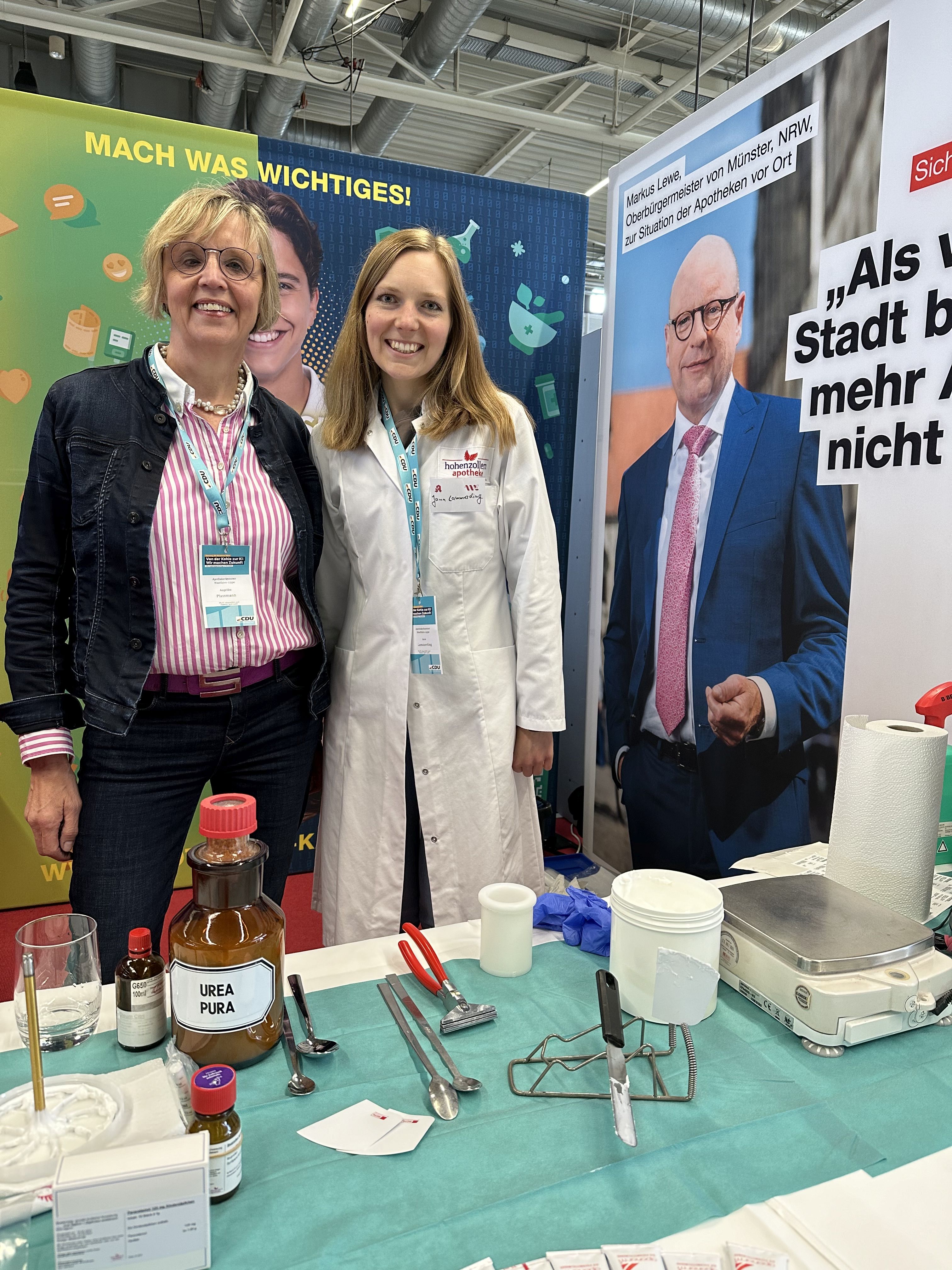 PTA Jana Lammerding stellte live am Stand eine Handcreme her – als ein Beispiel für die zahlreichen Leistungen, mit denen die Apotheken vor Ort die Versorgung der Bevölkerung mit Arzneimitteln sicherstellen. Die Handcremes wurden an die Delegierten verteilt, dazu gab es stets vom AKWL-Team alle wichtigen Daten, Zahlen und Fakten.